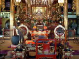 本堂の高さは鬼瓦まで18メートル(十間)。広さは間口、奥行とも22メートル四方(十二間四方)一四六坪余りの大きく歴史のある心なごむ木造建築です。しかし明治42年(1909年)それまでの萱葺の屋根から瓦葺に替えそれも80年余の年月で痛みもひどくなり、平成5年に現在の銅葺屋根に替えられました。