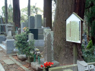 お墓は当初30メートル先にありましたが戦前、秋の豪雨で崩れました。戦後歌舞伎役者、当市有志のきもいりで、この地点に新しく建てかえられたものです。